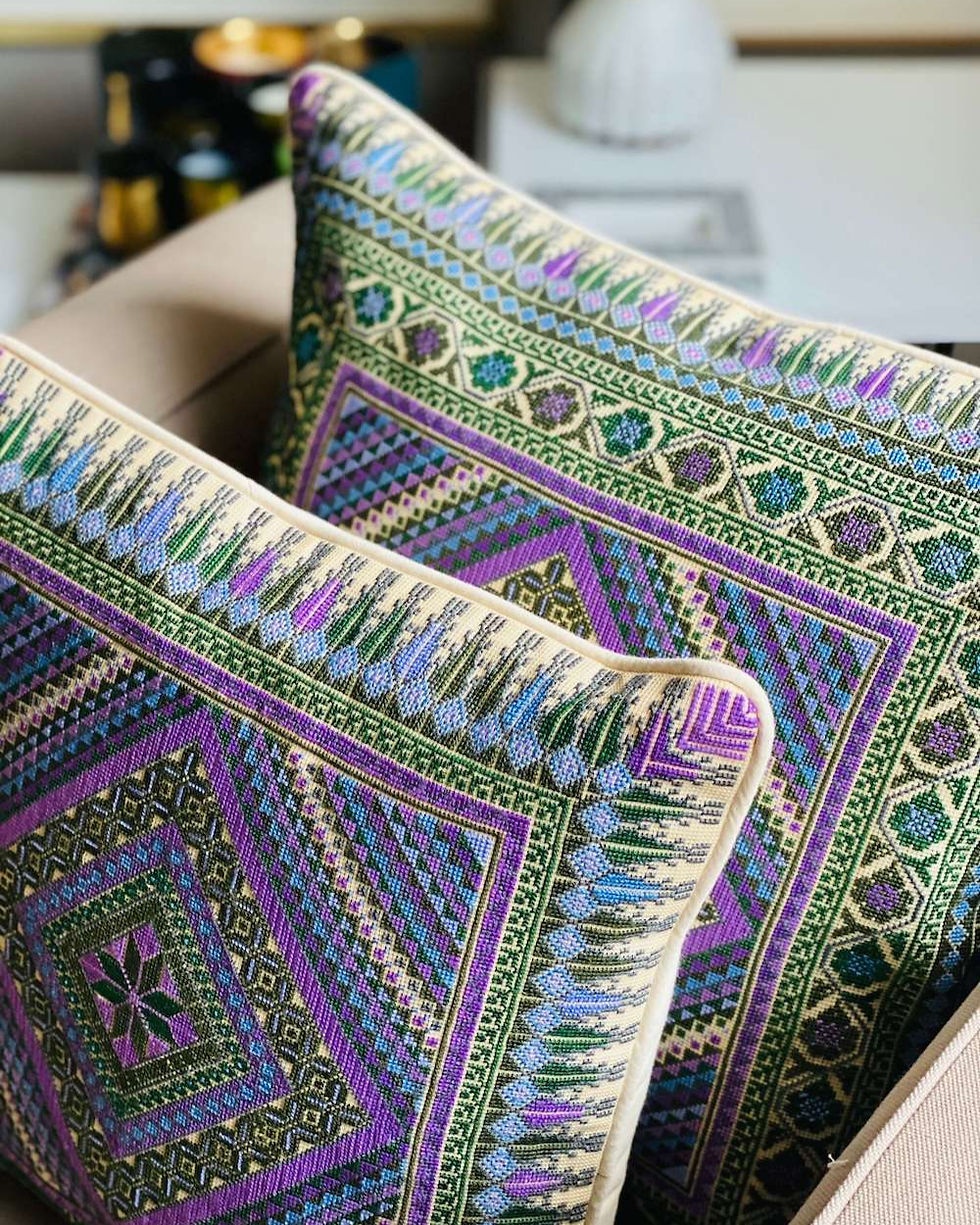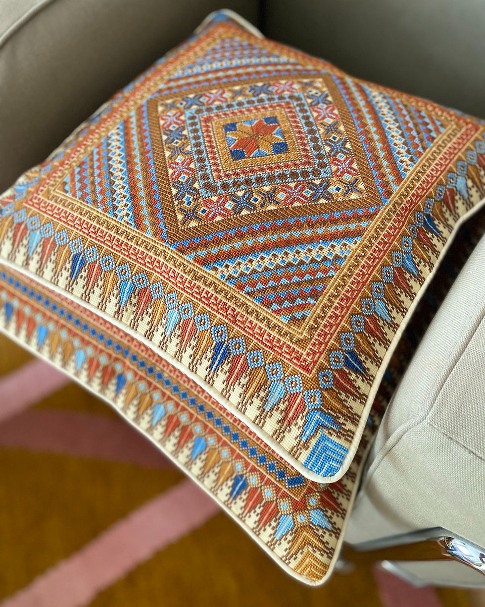 Die Kissen und Untersetzer von LA CORNICHE werden alle per Hand gearbeitet. Die Kunst des Stickens entstand vor vielen Jahrhunderten an unterschiedlichen Orten im alten Palästina. Jeder Ort, jede Region hat orientalische Wohnaccessoires mit eigenen Stichen, Mustern und Techniken entwickelt.